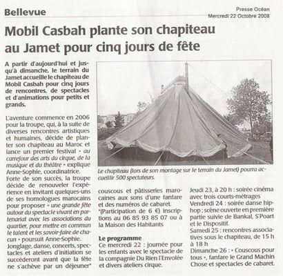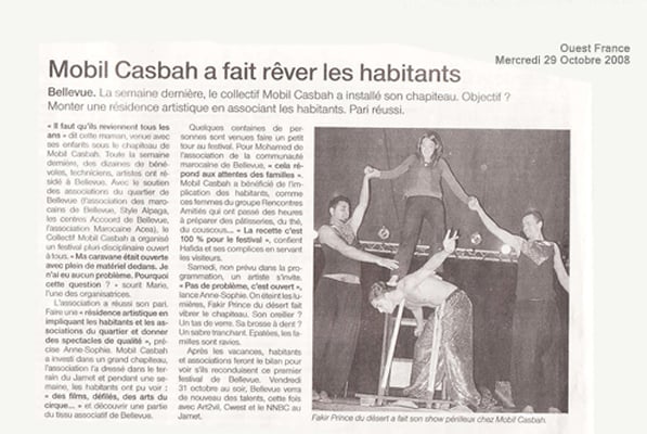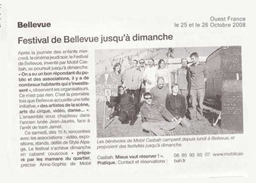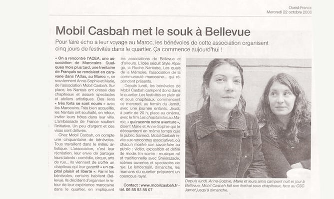 Suite à la coopération des associations Les Chapitalistes, aujourd'hui appelé Collectif Mobil Casbah (Nantes) et l'Association de Culture et d'Environnement de l'Atlas » (Telouet), deux ans plus tard, du 20 au 28 octobre 2008, ce sont les membres de l'association marocaine qui se déplacent en France afin de poursuivre l'échange de savoir et nous aider à organiser, dans un quartier nantais, un festival franco- marocain « Le Festival de Bellevue ».