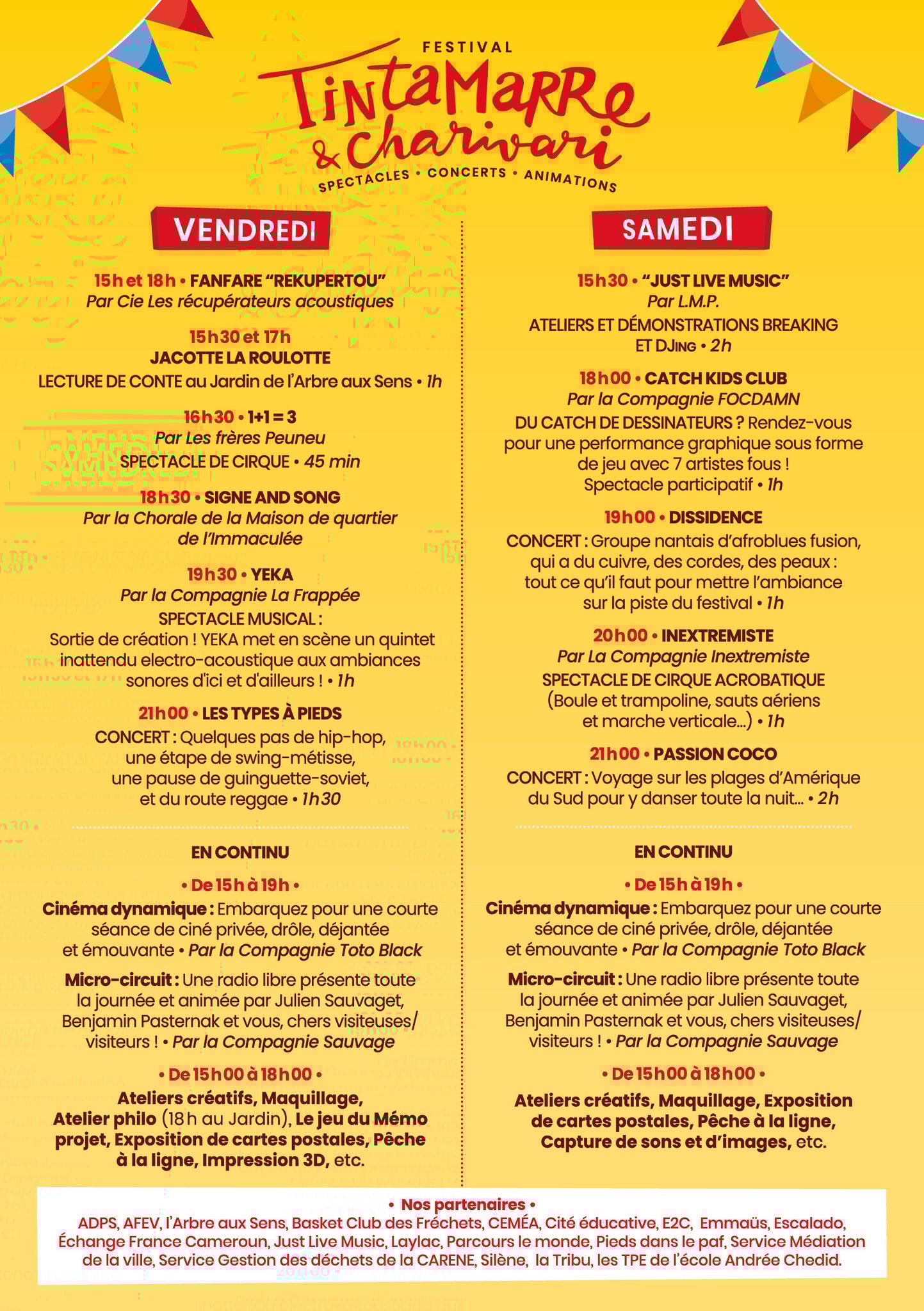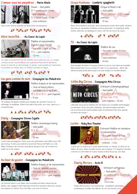 Pêpaloma (Conte soundpainting et K), Pouss’pieds (Barge Land), D’Icidence (Chut !) et comptez parmis nos invités : La Roul'Hot - Cie Betty BoiBrut', In Extremis (Extremité), Bankal (Fab Vs