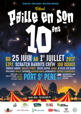 Du dimanche 25 juin au samedi 1 juillet à Port Saint Père, le festival Paille En Son remet le couvert pour souffler sa 10° bougie. Et la joyeuse équipe de FullBaz'art a mis les