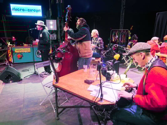 (COMPLET !) Vendredi 21 janvier, 2 spectacles + 1 concert (avant-première) : avec Lombric Spaghetti (50 min.), La Frappée (30 min.),6 Singes (45 min.) et RADIO X (La Radio en continue) !