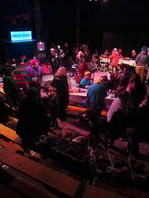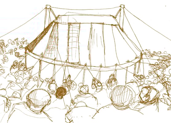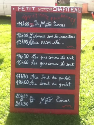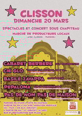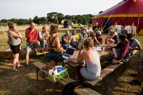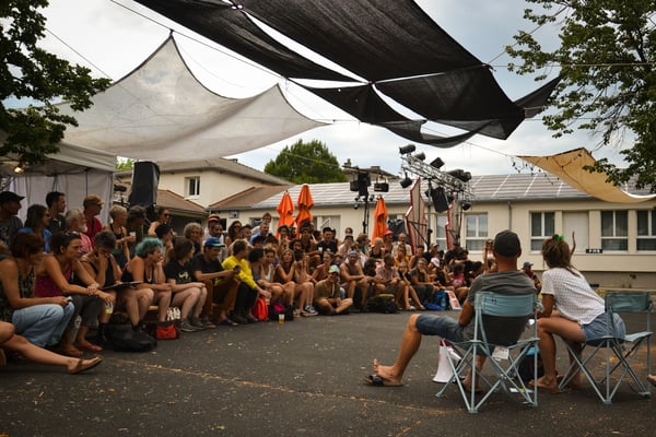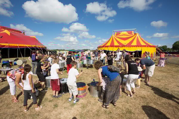 Un chapiteau, un village d'artisans, une scène concert, une scène cirque, des entresorts, des espaces d'ateliers et convivialité !
