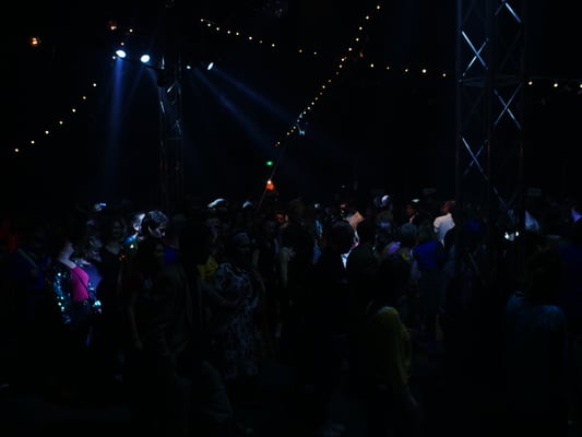 2 scènes, 400 m2 de piste de bal, 1 buvette, 1 restaurant, 6 bains de pieds, 1 salon de beauté, 8 toilettes sèches, 1 vestiaire et 1 horloge géante.