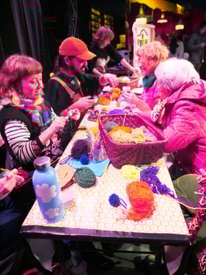 Une émission géante à bâche ouverte sous le chapiteau pour tricoter ensemble à la main, parler tricot, son histoire, sa culture, tricoter les sons, tricoter les mots... Cette émission sera chaleureuse, moelleuse et s’adresse à tous les publics.