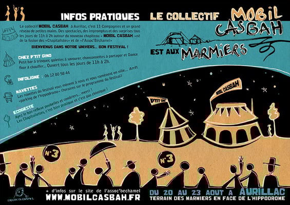 Mobil Casbah, collectif Nantais ayant roulé sa bosse et traîné ses chapiteaux all over the world, fait une escale conviviale et spectaculaire à Aurillac puis à Chalon dans la rue.