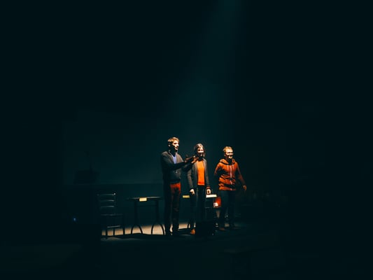 Le temps d'une matinée, nous avons invité des professionnels du spectacle et des collaborateurs, à assister à la présentation de nos futurs spectacles, de nos créations en cours et de nos jeunes créations qui n'ont pas eu le temps de jouer. Environ 20 minutes par projet, le temps de présenter nos univers singuliers : du cinéma forain, du théâtre percussif et philosophique, du masque et de la marionnette, du cirque, du clown tunning.
