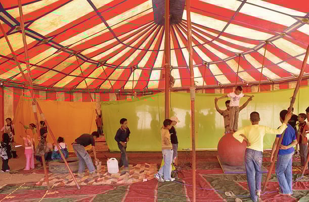 Festival Circart#2, en 2011, le collectif Mobil Casbah accompagné de CirkoCrik, Les Pas d'Nom Pas d'Maison et Les ColoKolos refont le voyage vers Telouet