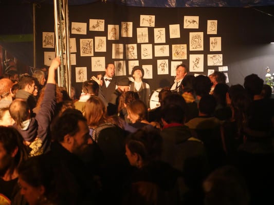 Alors, approchez Mesdames, Messieurs ! N’ayez pas peur des fauves, Venez grignoter et siroter nos spectacles. Admirez galettes et muscadet Servis par des ouvreurs chics, strass et rock'n'roll. N’oubliez pas !