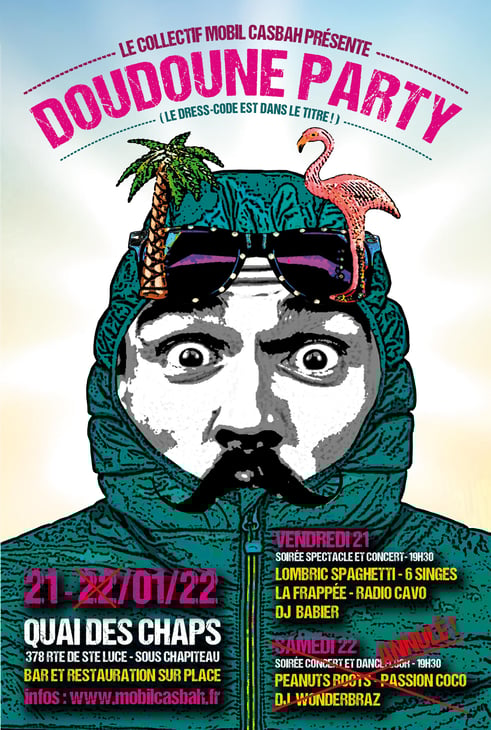 Réservation en ligne : https://www.helloasso.com/associations/collectif-mobil-casbah/evenements/doudoune-party