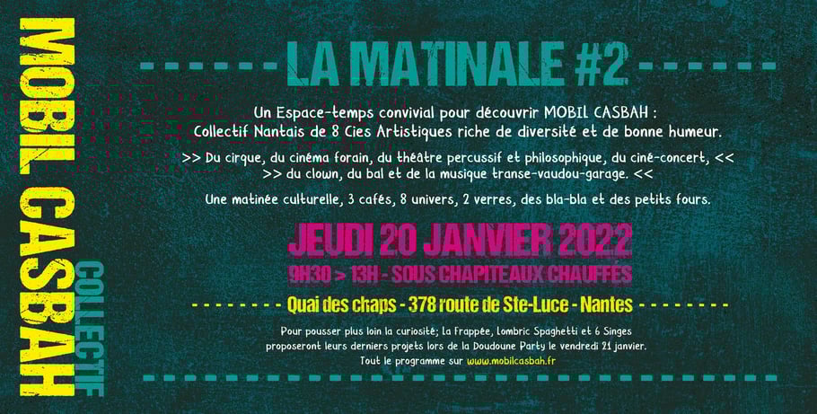 la convivialité, le collectif Mobil Casbah invite les professionnels à venir découvrir son activité artistique et culturelle lors d'une Matinale, de 9h à 13h chez Quai des