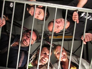 Trio déjanté d’équilibre instable sur barrière soufflante.